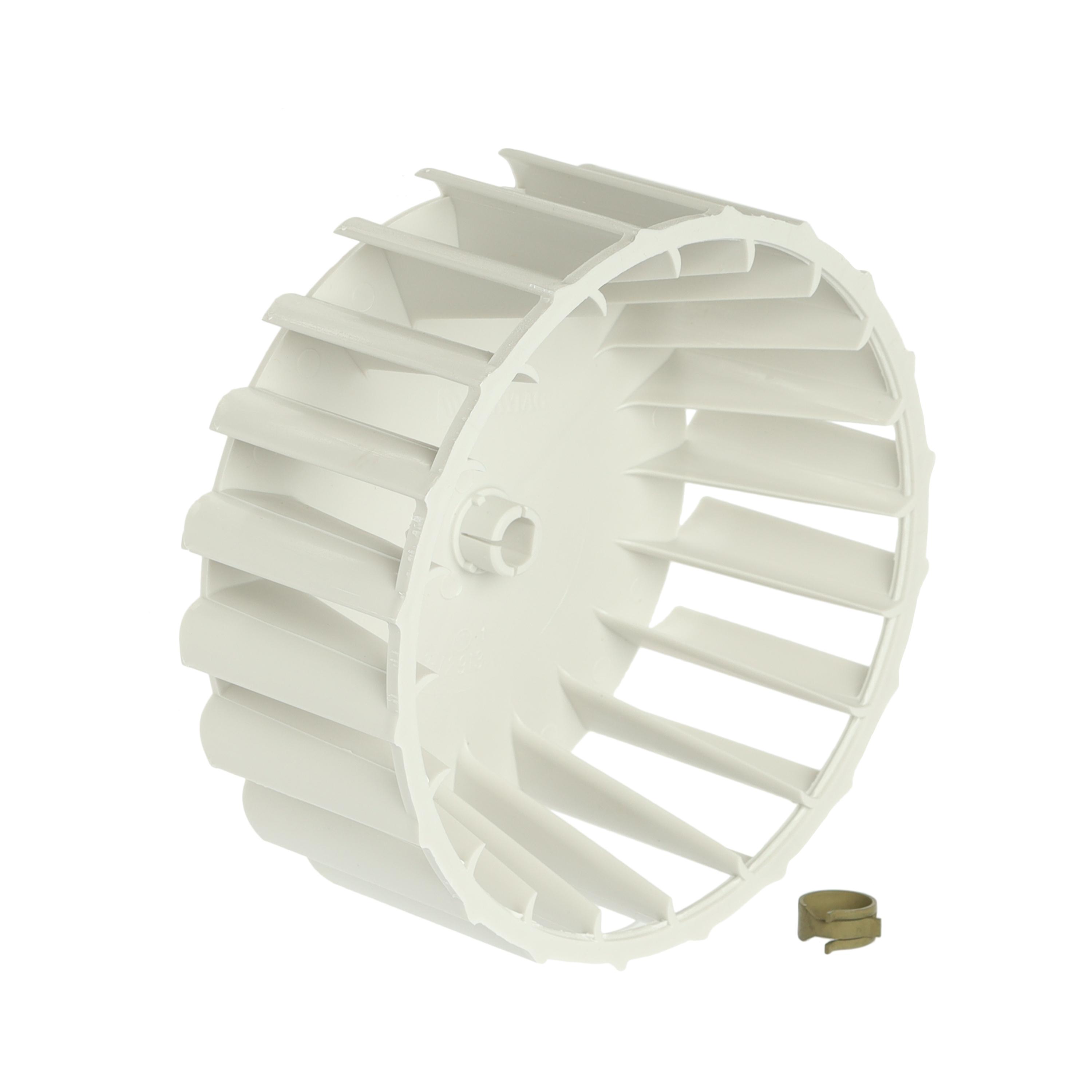 Fonction : La roue de soufflerie est montée sur l’arbre du moteur et propulse l’air à travers le tambour de la sécheuse et vers l’évent d’évacuation.